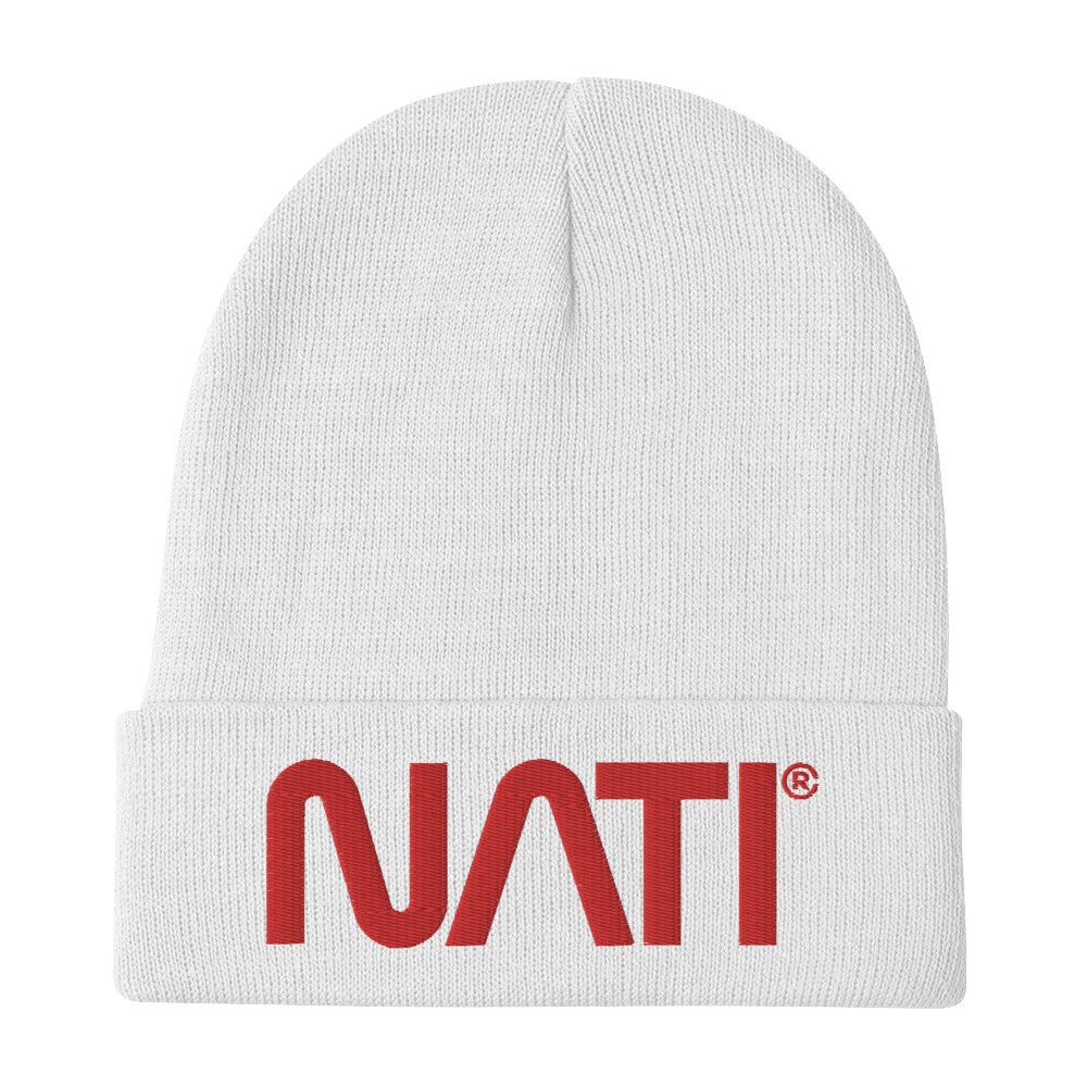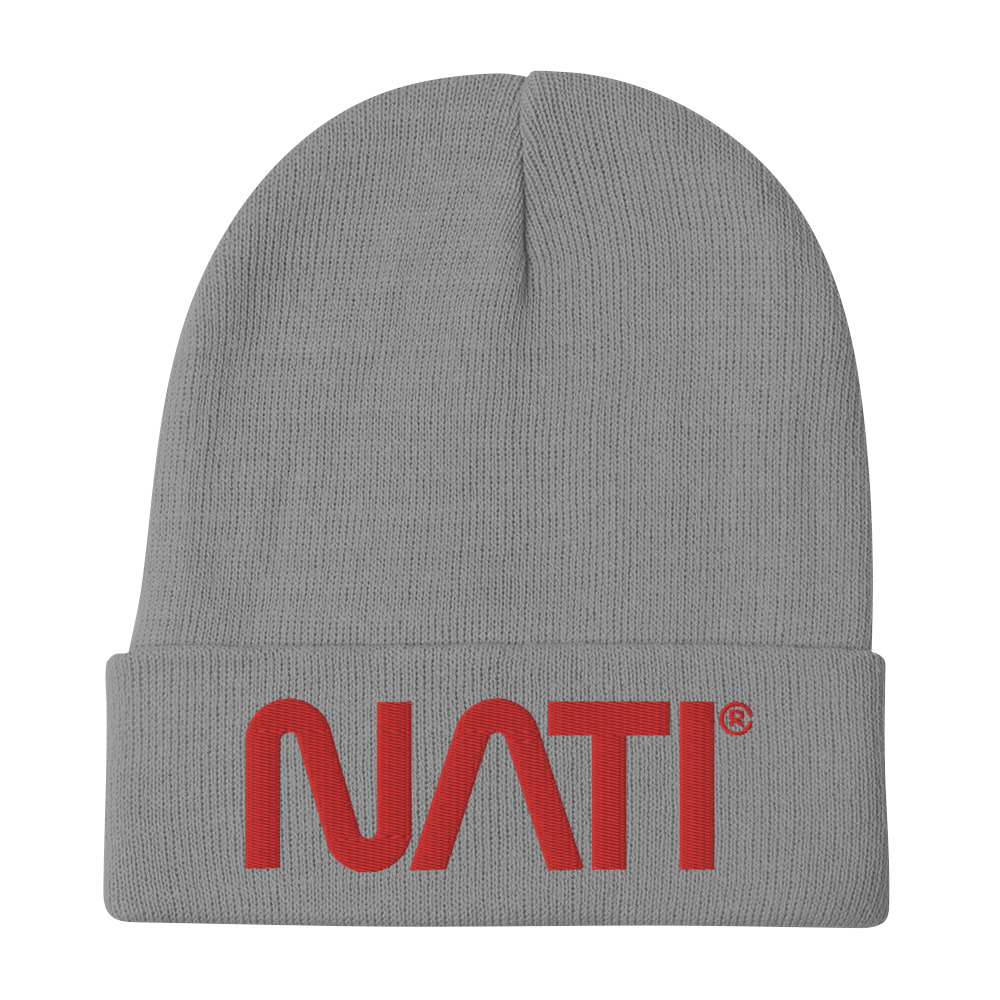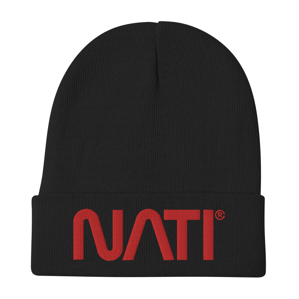 Red NATI Embroidered Beanie